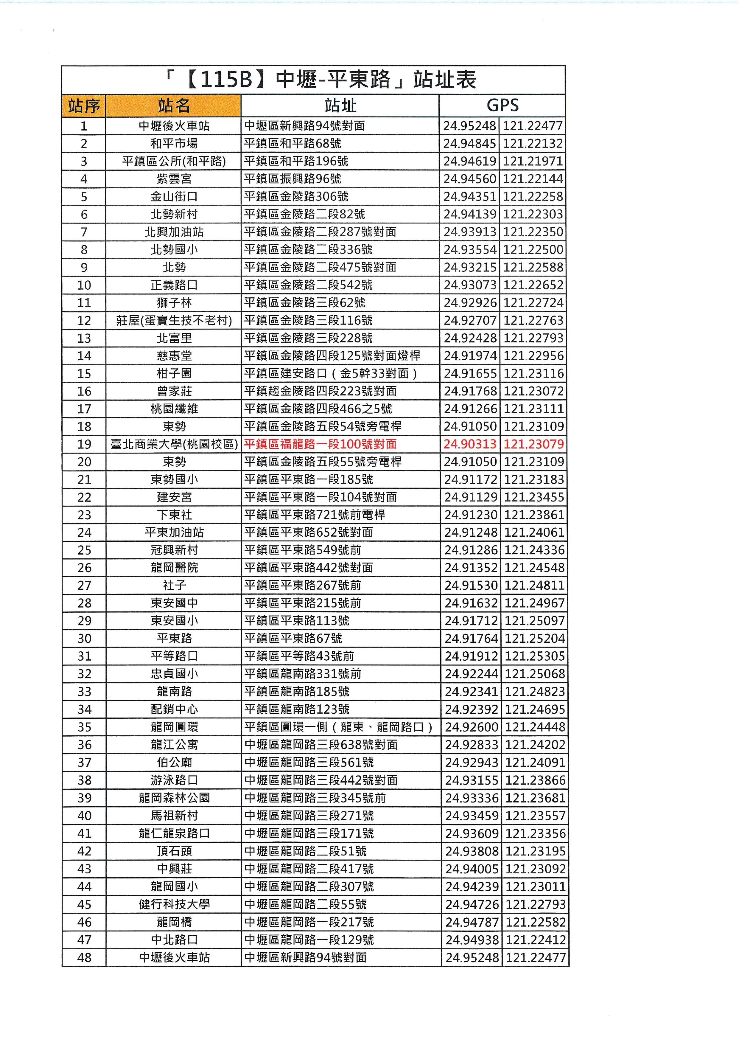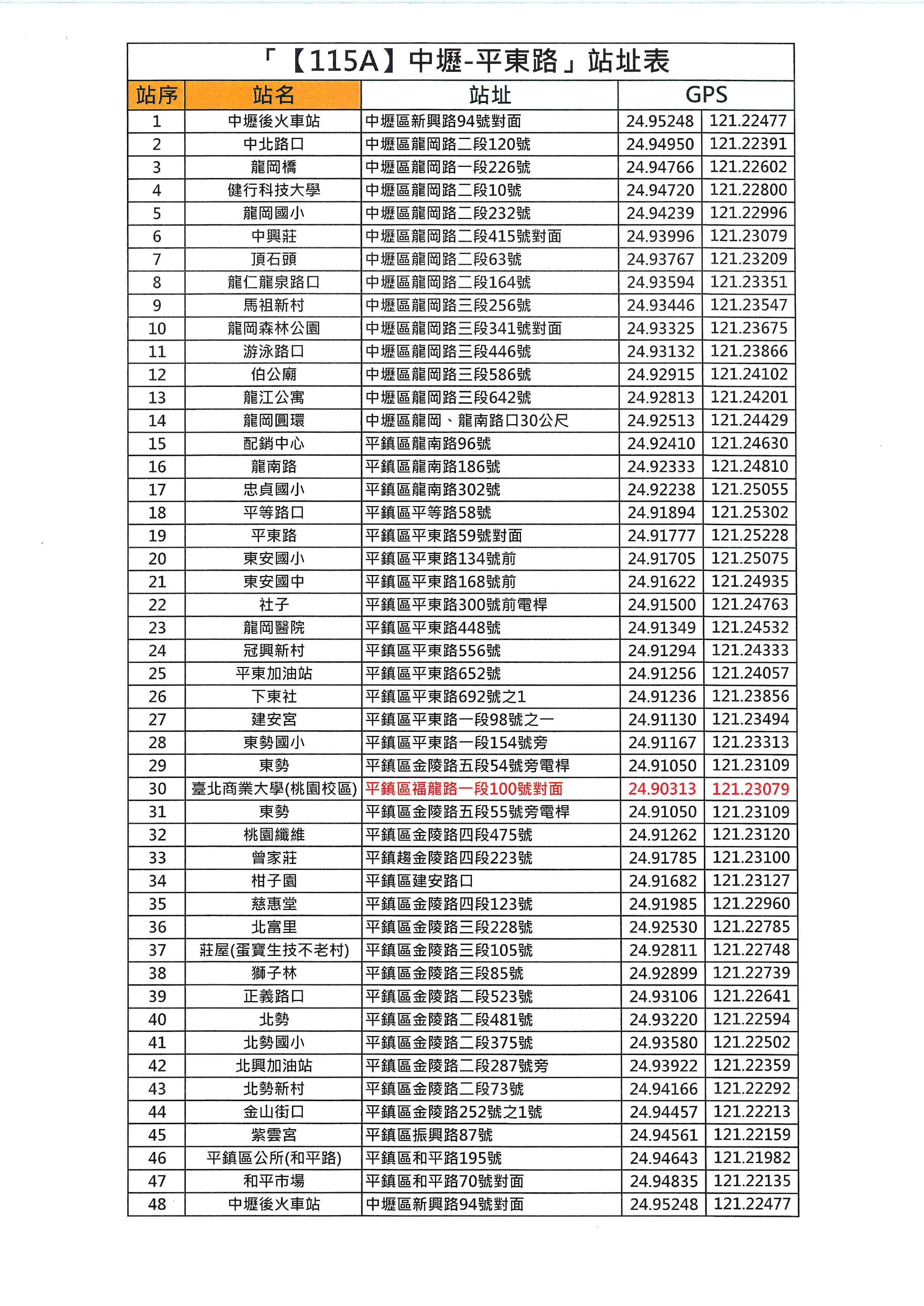 - 115A、115B路線站位調整自115年2月23日(一)起實施。